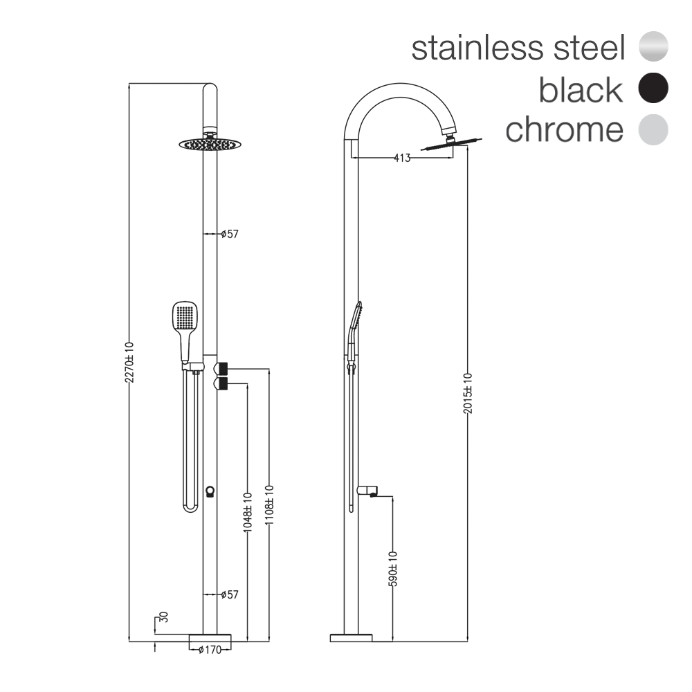 An outdoor shower crafted for poolside and open-air environments.