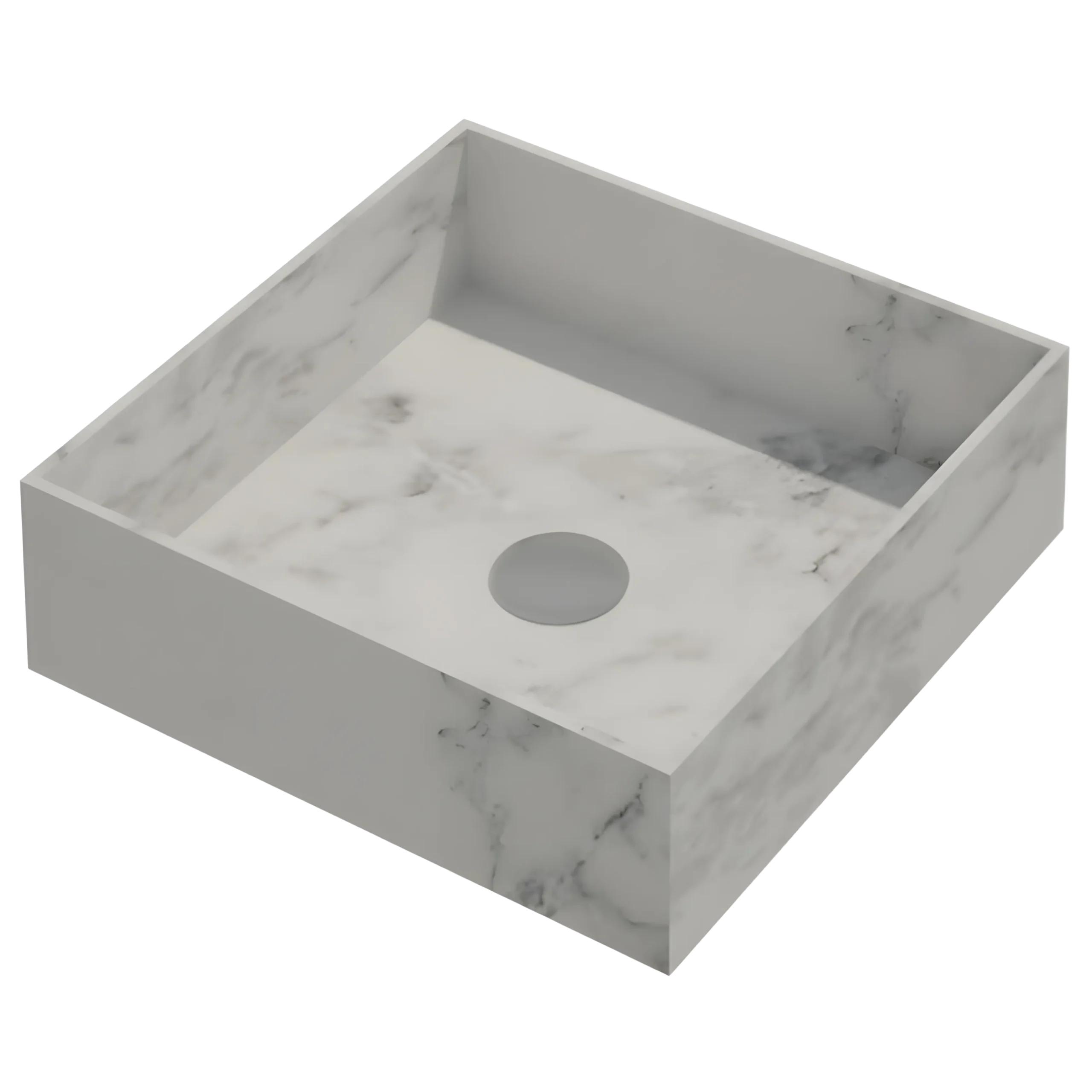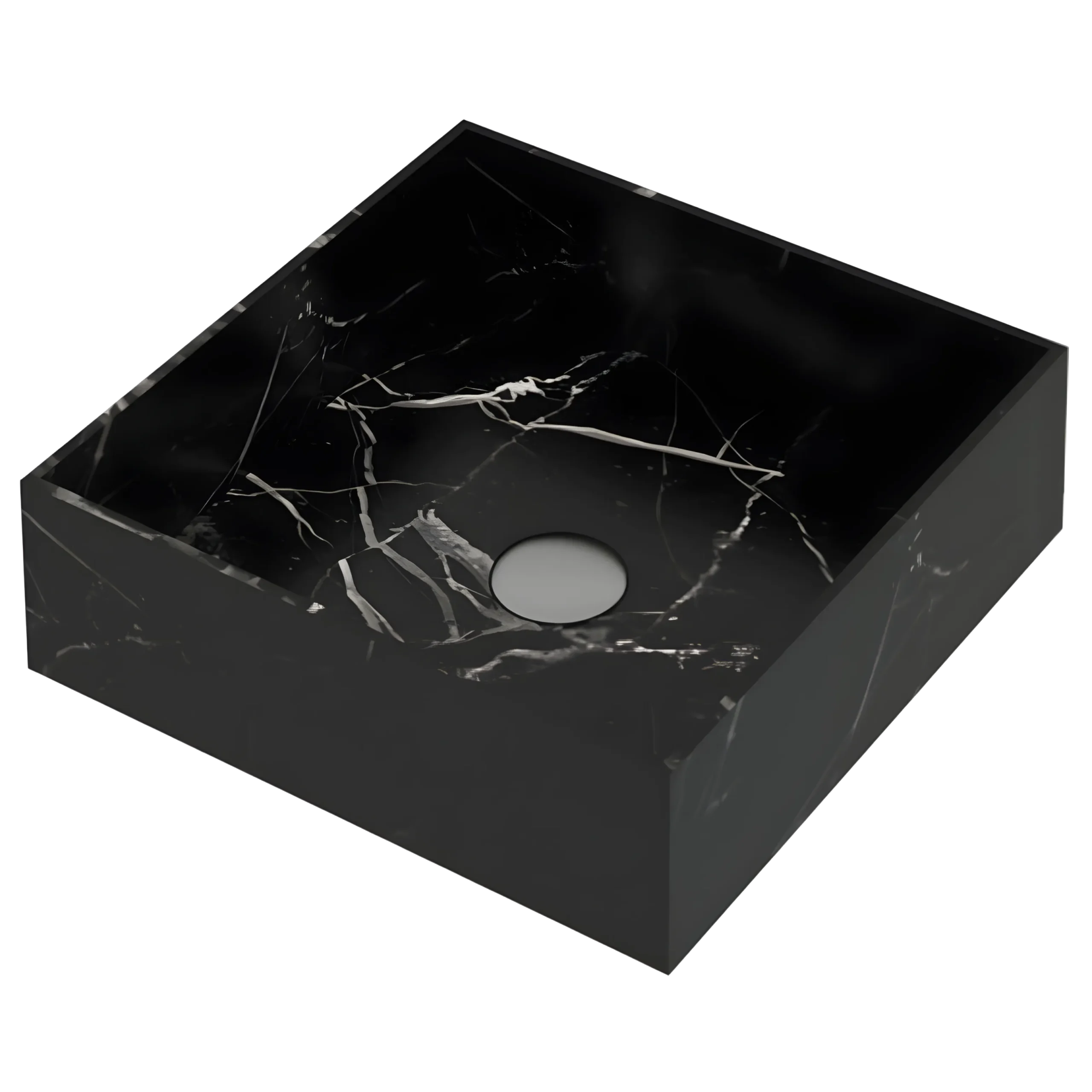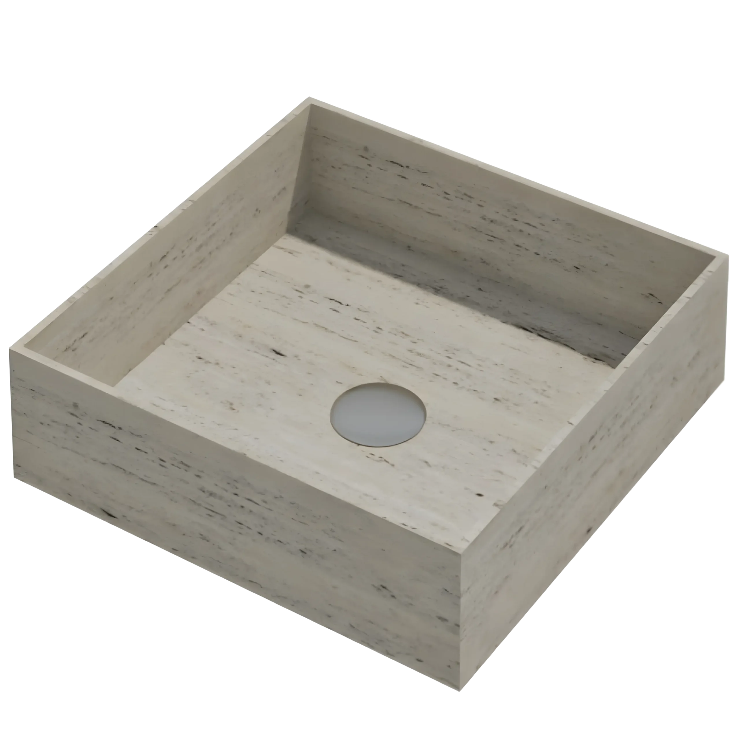 A structured square countertop basin that celebrates the natural beauty of stone through its sharp edges and refined silhouette. The bold geometry enhances modern interiors with clarity and style. Available in White Marble, Black Marble, and Travertine.