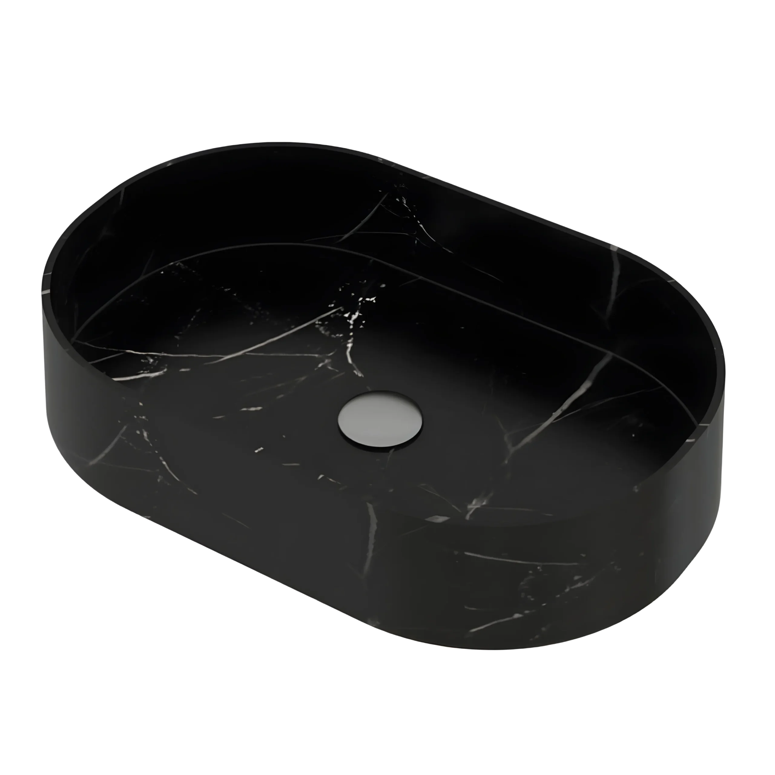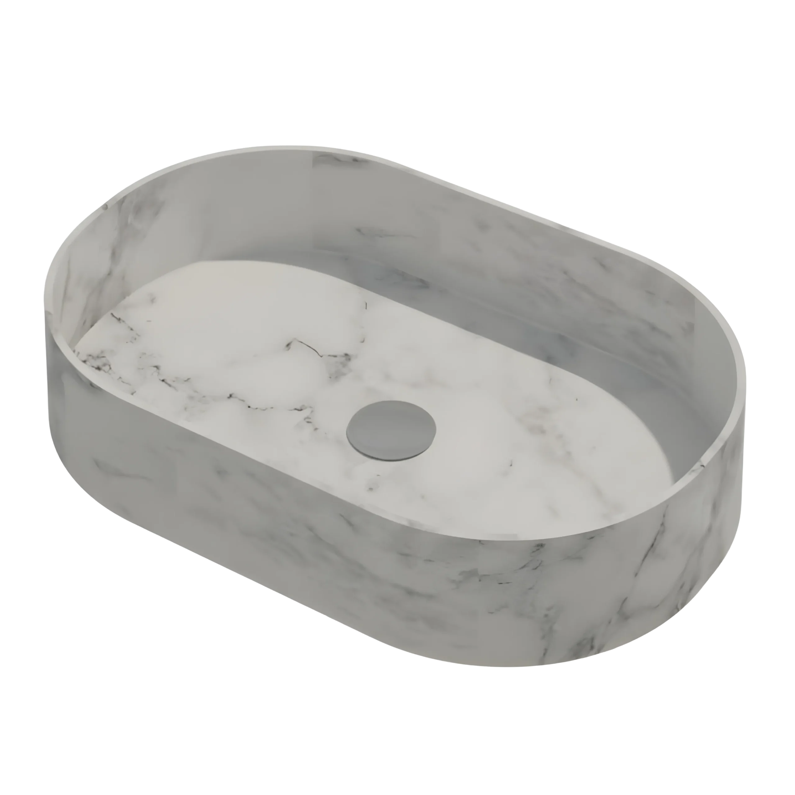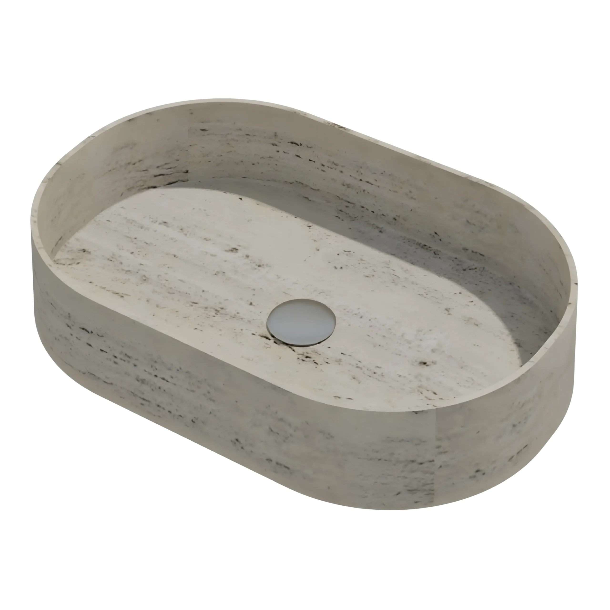 A capsule-shaped stone basin that blends smooth contours with a distinct modern personality. Its unique silhouette creates a sophisticated highlight within contemporary interiors. Available in White Marble, Black Marble, and Travertine.