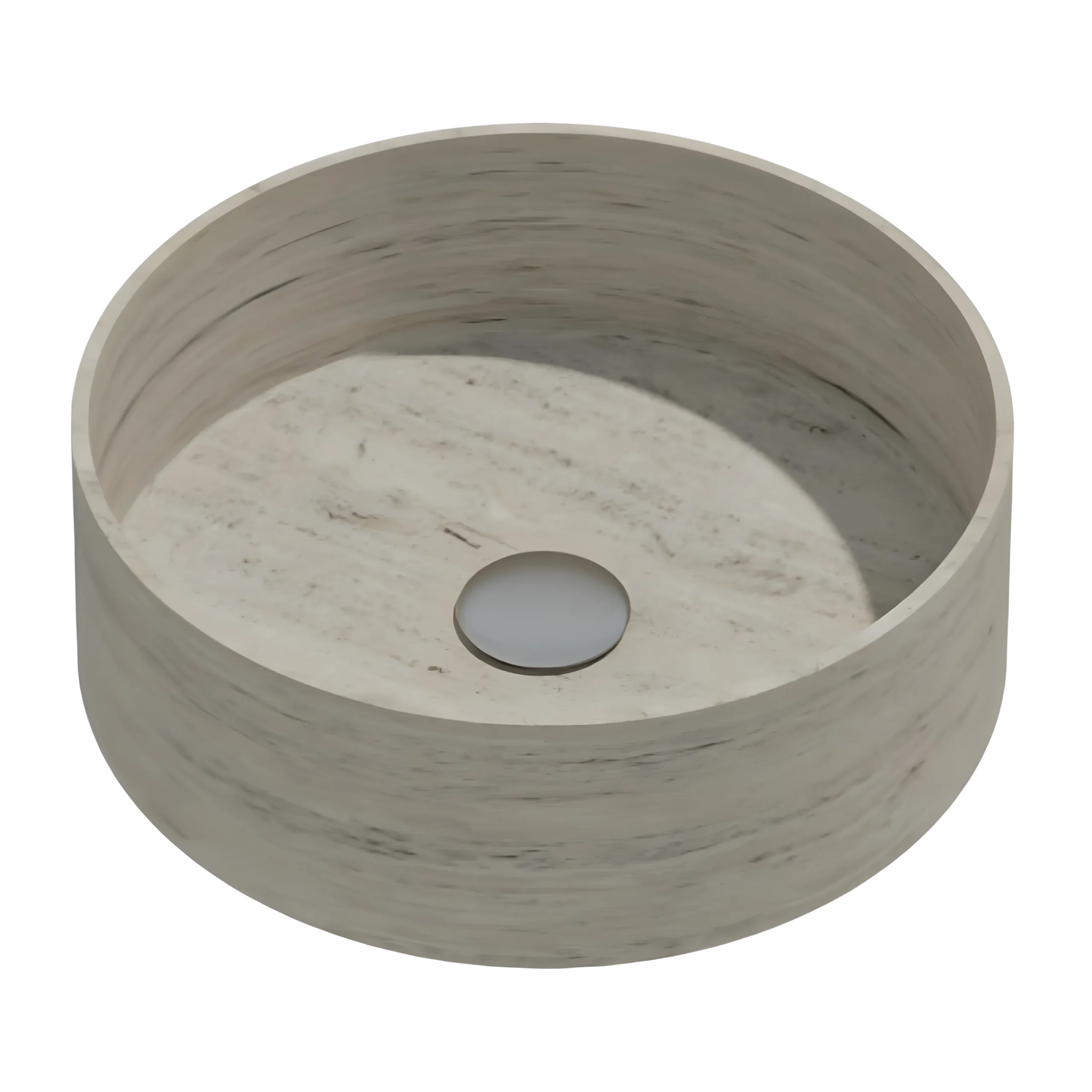 A round countertop basin crafted from natural stone, offering soft contours and timeless elegance. Its gentle shape harmonizes beautifully with any luxury vanity. Available in White Marble, Black Marble, and Travertine.