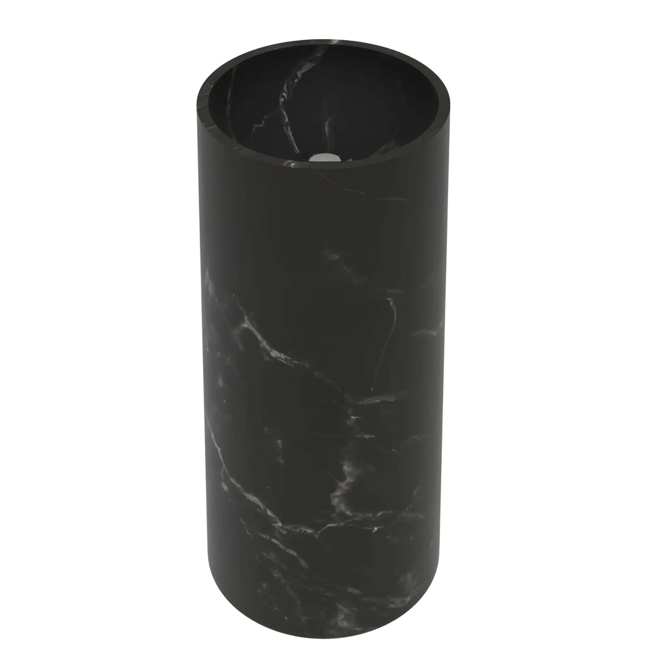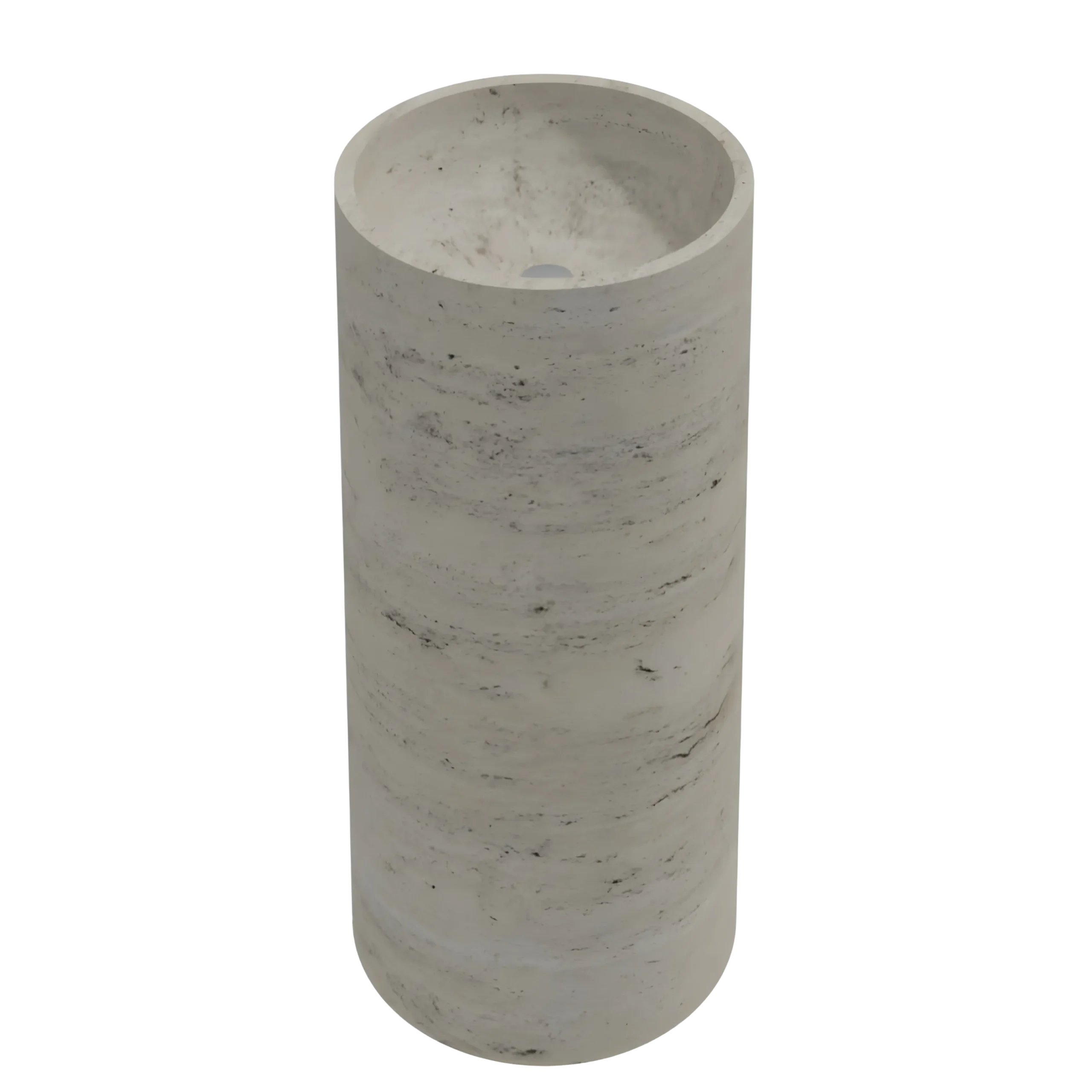 A sculptural floor-standing basin crafted from natural stone, defined by its smooth circular silhouette. The gentle curves create a refined focal point that elevates any luxury bathroom. Available in White Marble, Black Marble, and Travertine.