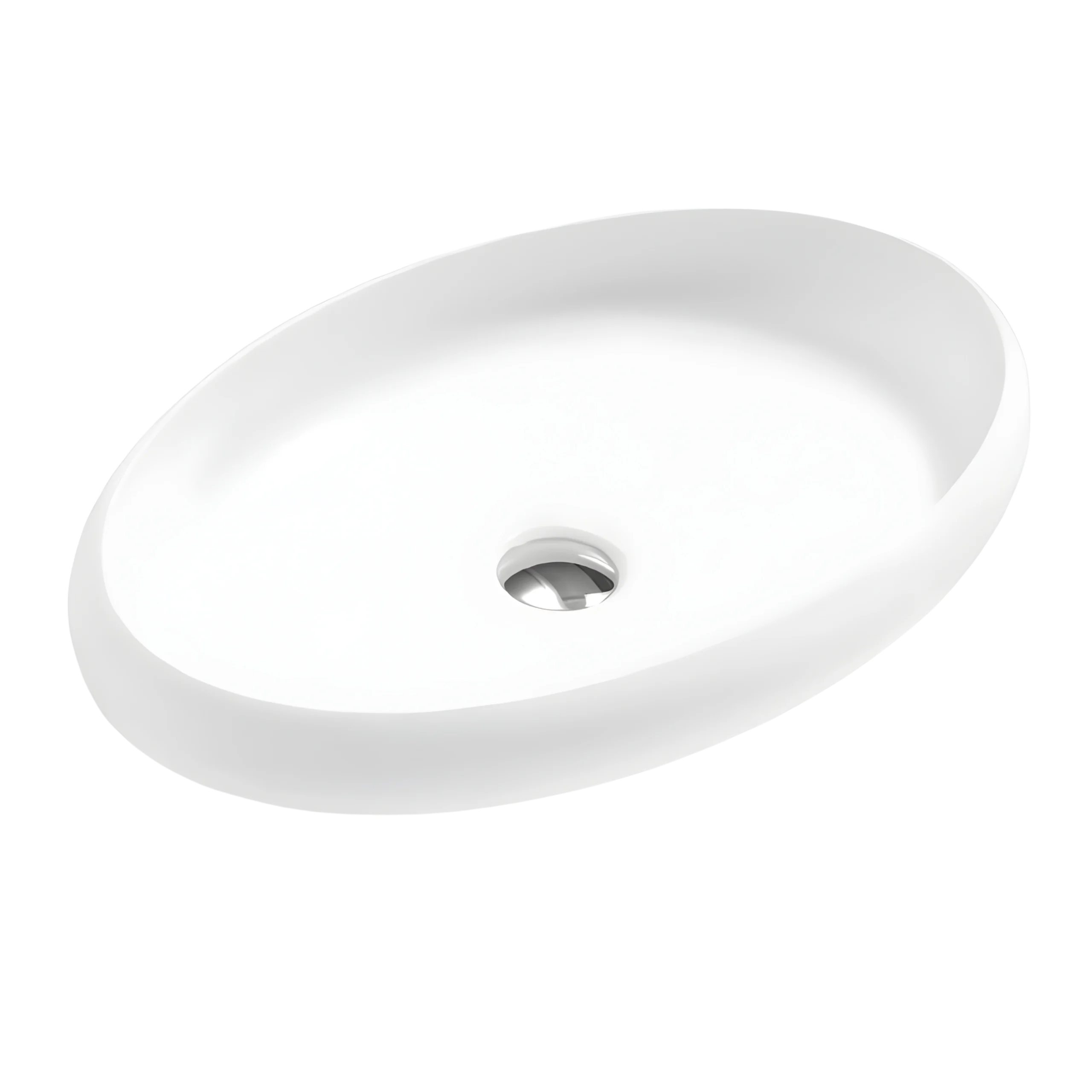 An elegant oval basin offering elongated curves and solid surface strength.
